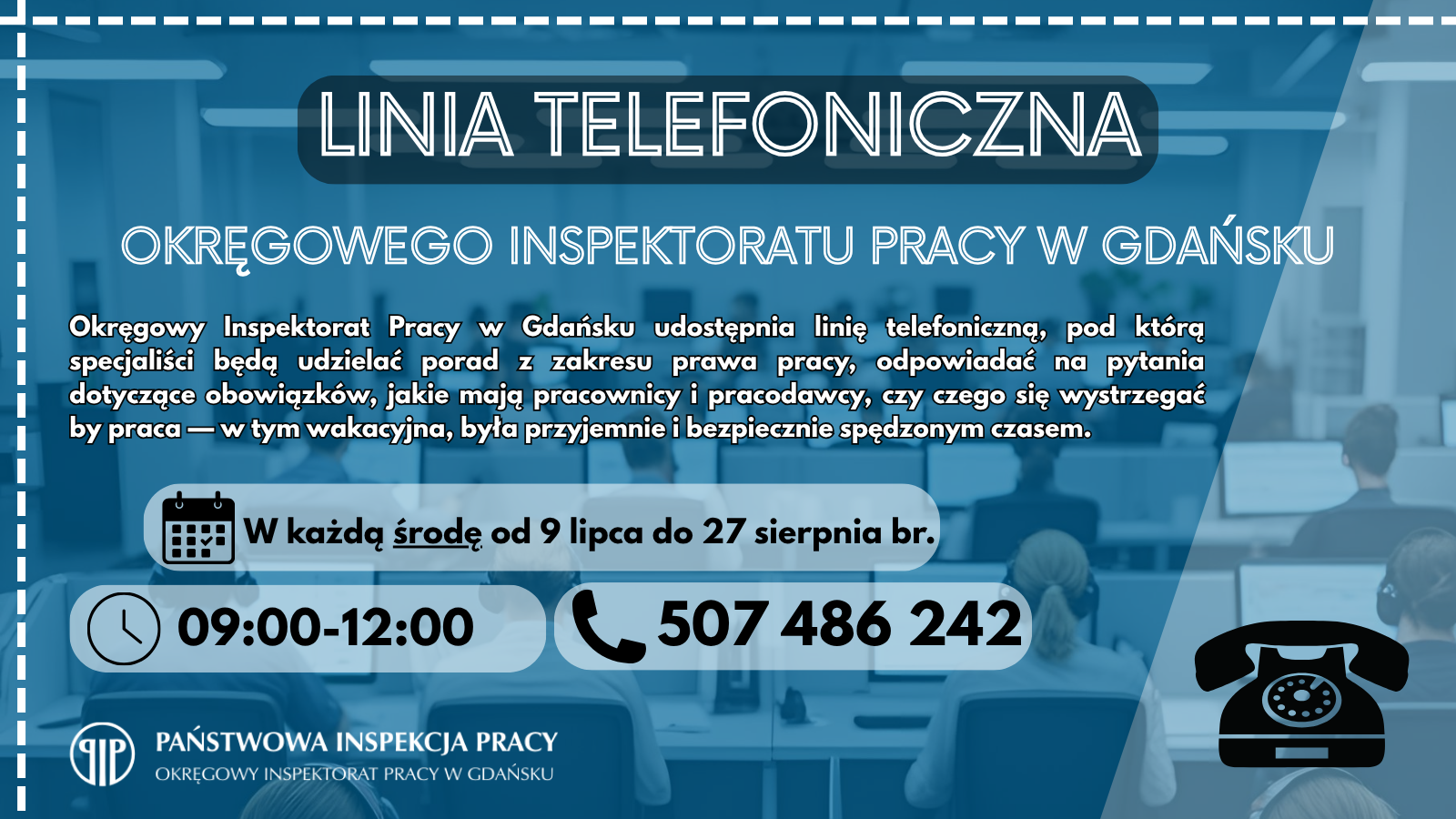 Okręgowy Inspektorat Pracy w Gdańsku uruchomił specjalną linię telefoniczną, której celem jest udzielanie profesjonalnych porad w zakresie sezonowej pracy wakacyjnej.